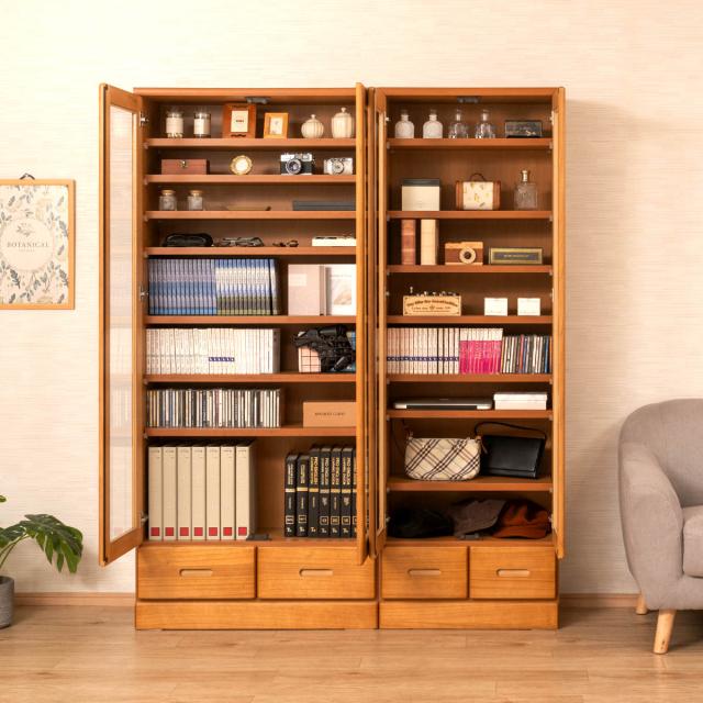 大切な書籍や趣味のコレクションなどをホコリから守るガラス扉付きの書棚です。薄型ながらも、たくさんの物をスッキリと収納することができます。大判書籍や百科事典も収納可能です。
