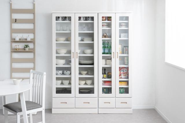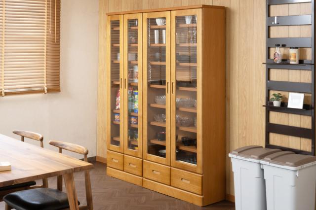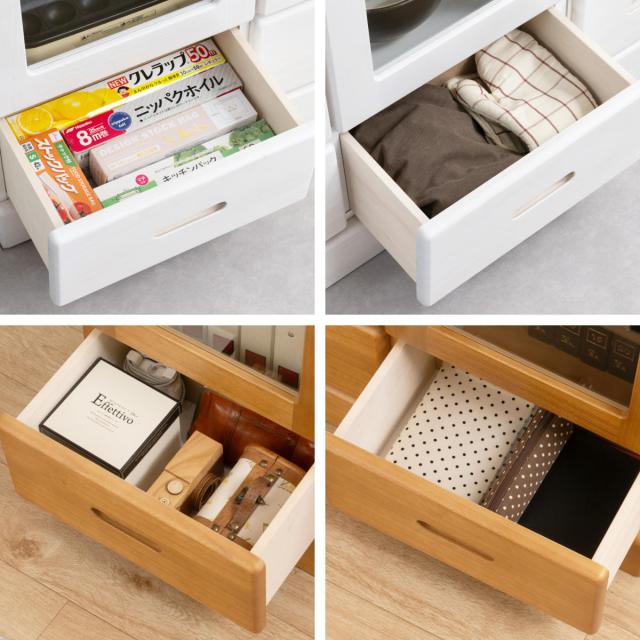 桐は調湿機能が高く、食器類や食品などの収納にも適しているのでカップボードとしてもお使いいただけます。狭いキッチンでも圧迫感なく設置できます。