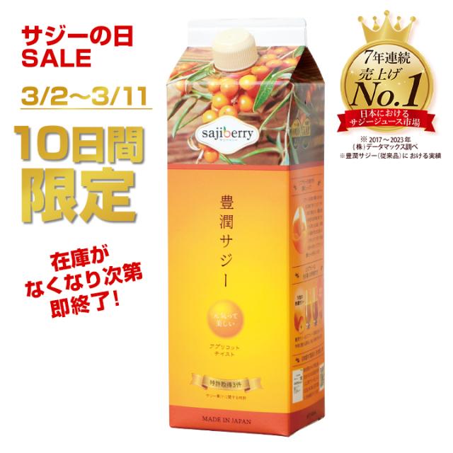 【サジーの日 SALE】豊潤サジー アプリコットテイスト 1000ml 公式 フィネス(紙パック)200種類以上の栄養素が含まれたドリンク ジュース 鉄分 リンゴ酸 ミネラル ビタミンC βカロテン アミノ酸 ビタミンE 有機JASサジー原料 栄養補給 鉄分補給 サジーベリー