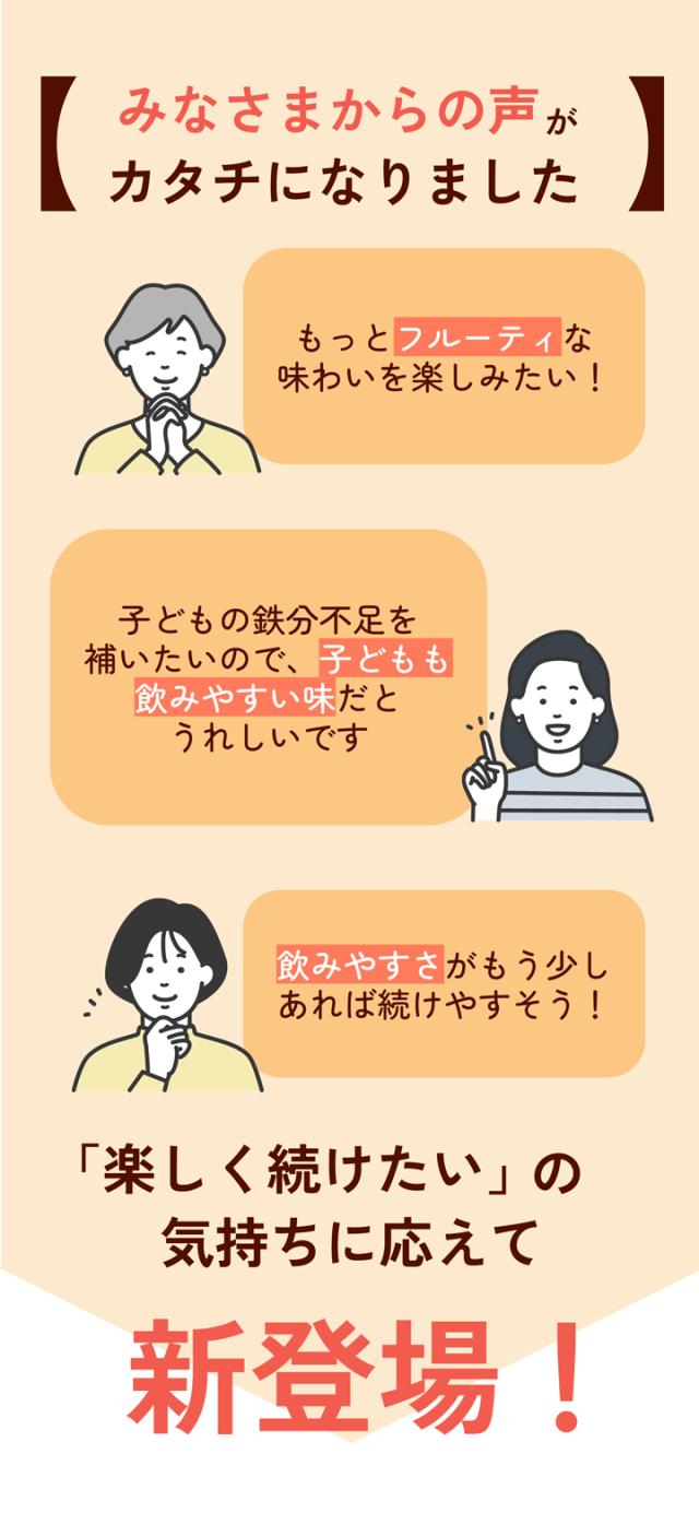 - 2回目購入しました。毎朝牛乳や豆乳で割って飲んでます。貧血もあり階段で息切れをしていましたが、少し楽になったように思います。味も飲みやすいので継続して飲んでいきたいと思います。