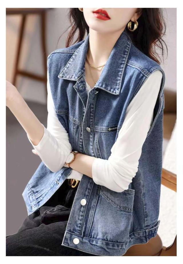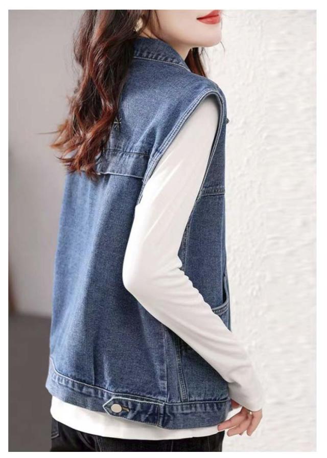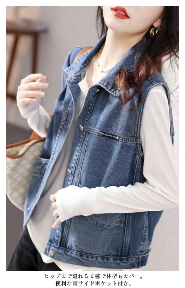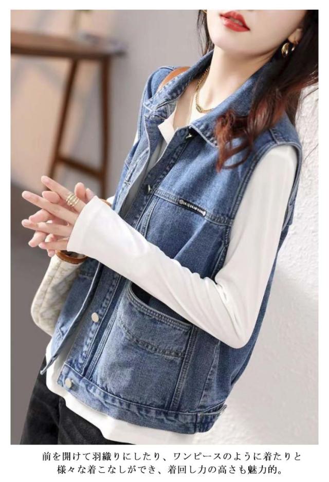 デニムベスト レディース ベスト ジレ ノースリーブ トップス ポケット付き 重ね着 レイヤード 羽織り 前開き デニムアウター 春ベスト デニムジャケット ジレ ベスト ノースリーブ アウター カーディガン 体型カバー ゆったり カジュアル 普段着