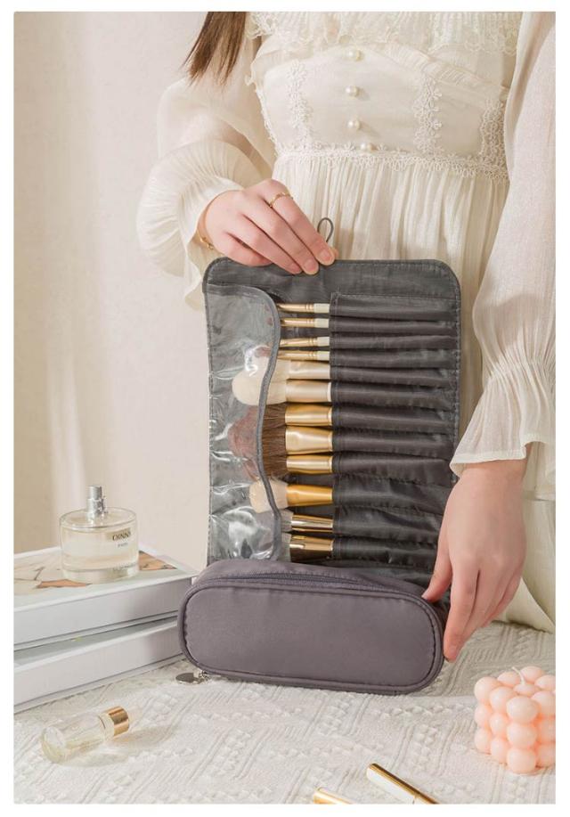 メイク道具収納 収納ケース メイクブラシ収納 大容量 化粧ブラシ収納袋 メイクブラシポーチ 防水 収納ポーチ メイクブラシケース コスメポーチ 巻き型 コンパクト おしゃれ 出張 旅行 ペン入れ 筆記用具 収納 機能的 無地 シンプル 送料無料