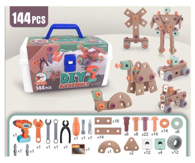 電動ドリルおもちゃ 144点セット 工具おもちゃ 大工さんセット 組み立て ねじ おもちゃ 電動ドリルおもちゃ ドリル 知育玩具 玩具DIY 立体修理キット ツールボックス 子供用 おもちゃ クリスマス 誕生日 プレゼント ギフト
