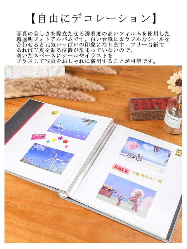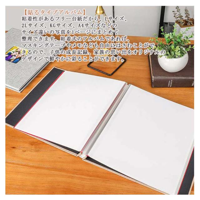 | 最大360枚収納!粘着式アルバム。多種類サイズの写真対応!自由に写真を貼る! 写真のサイズが色々あるの悩み解消〜貼り付け式で自由にアレンジでき、綿麻素材でしっかりした良いアルバムでオススメ! 【貼るタイプアルバム】粘着性があるフリー台紙だから、Lサイズ、2Lサイズ、KGサイズ、A4サイズなどのサイズ違いの写真を1ページにまとめて整理できます。粘着式のアルバムであれば、マスキングテープやメモなども自由にはさむことができるので、子供の成長記録、家族の思い出をオリジナルのデザインで鮮やかに彩ることができます。 【ウィンドウありtype】アルバムのカバーにはフロントウィンドウがあり、お好みに合わせて写真を入れることができます。 【長期保存に最適】しっかりした厚手のフリー台紙を使用して、インクジェットプリンタによる写真も守り、熱・光・湿気などに強く、写真の長期保管に最適です。貼るタイプは写真のレイアウトが自由にでき、何度でも張り直せる点が魅力です。 【自由にデコレーション】写真の美しさを際立たせる透明度の高いフィルムを使用した超透明フォトアルバムです。白い台紙にカラフルなシールを合わせると元気いっぱいの印象になります。フリー台紙であれば写真を貼る位置が決まっていないので、空いたスペースにシールやイラストをプラスして写真をおしゃれに演出することが可能です。 【様々な場合に適用】アルバムの写真を通して、人生の幸せな瞬間を思い出すことができるのです。子供の成長記録、DIY写真集、卒業記念集、フォトコレクション、家族やお友達とのフォトアルバム、退職される方へのメッセージ、結婚記念日のプレゼント、ポストカードアルバムなどご利用いただけます。 【DIY可能】 1.フイルムを剥がす 2.写真を入れる 3.自由に飾り付ける 4.フィルムを閉める。軽く撫で空気を抜きます。 ※残る空気は写真を劣化にします。 | |