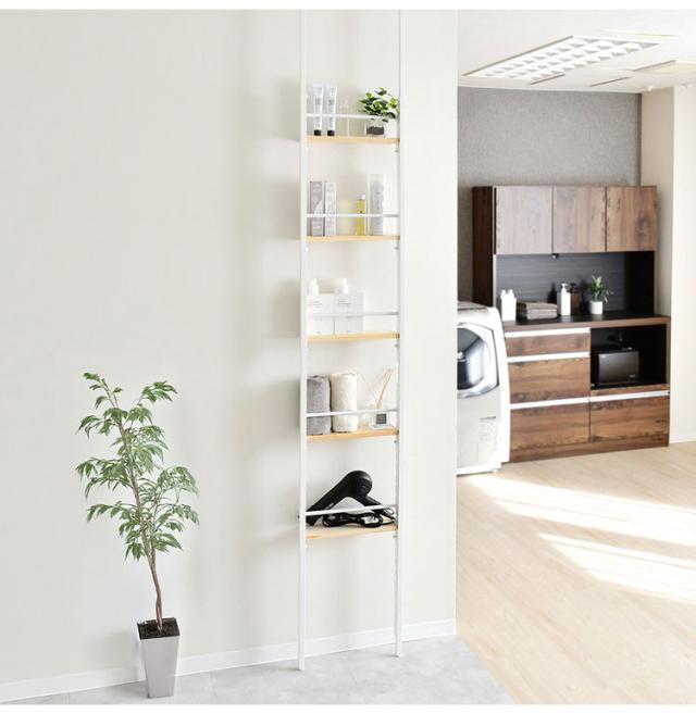 日本製 省スペース スリムウォールラック 幅40 奥行12.5 壁面収納 工具不要 天然木 突っ張り棚 突っ張りラック つっぱり 棚 シェルフ 隙間収納 すき間収納 ディスプレイ(代引不可)【送料無料