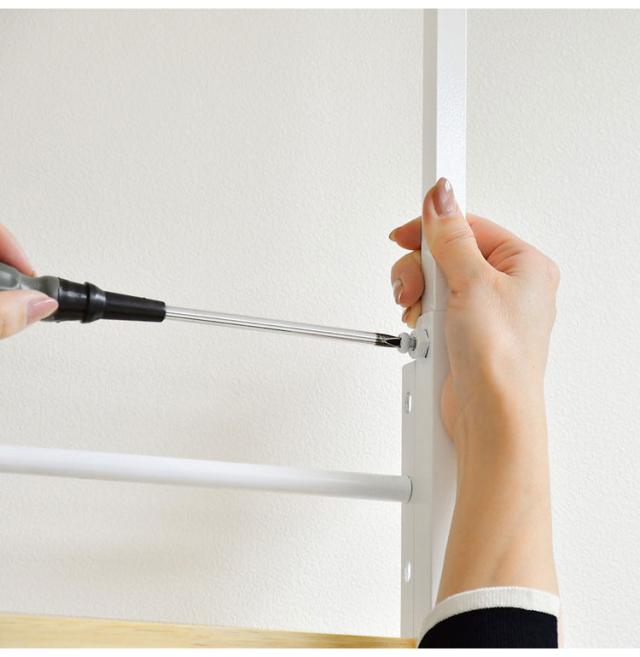 浮かせる収納が可能なこのラックは、つっぱり式で設置も簡単。