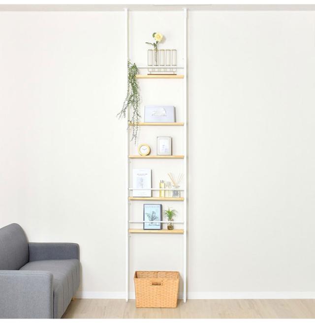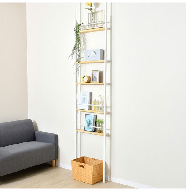 日本製 省スペース スリムウォールラック 幅55 奥行12.5 壁面収納 工具不要 天然木 突っ張り棚 突っ張りラック つっぱり 棚 シェルフ 隙間収納 すき間収納 ディスプレイ(代引不可)【送料無料