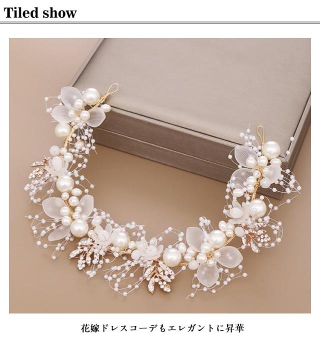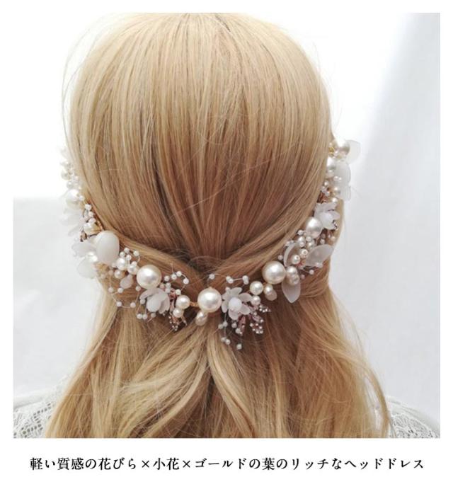 | エレガントな花びらカチューシャ 花嫁ドレスコーデもエレガントに昇華 軽い質感の花びら×小花×ゴールドの葉のリッチなヘッドドレス ドレスやワンピースにプラスするだけで華やかさを演出してくれるヘッドドレスです。 結婚式のフラワーガールやリングガールにはちろんのこと発表会やイベントにもお勧めです。 ヘッドドレス自体は留めピンがついていないので、リボンやヘアピンを通し様々なアレンジで楽しみ頂けます。 柔らかいワイヤーを使っているので簡単に形を整えられます。 | |