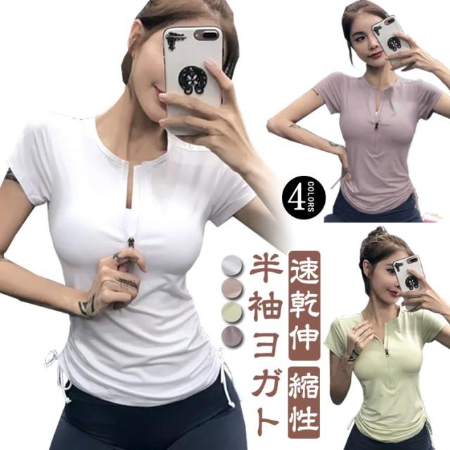 レディース トップス ヨガ スポーツウェア Tシャツ ショート丈 スポーツウェア タイトフィット トレーニング 半袖 ウォーキング ジム フィットネス トップス 半袖ヨガ ピラティス ウェア ランニング マラソン フィットネスウェア ヨガウェア ウェア 伸縮性 速乾