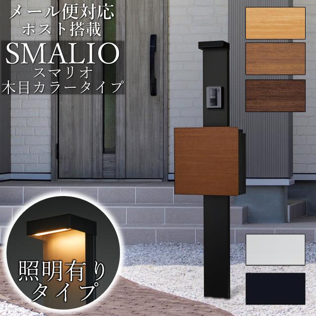 【LED照明付き】 ポスト付き機能門柱 SMALIO スマリオ 木目カラー ※インターホンは付属していません