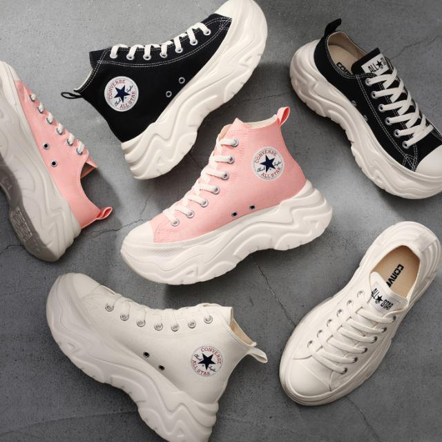 オールスターらしさを残しながらも、厚底ソール部分の大胆な意匠が特徴的なりトレンド感のある一足。