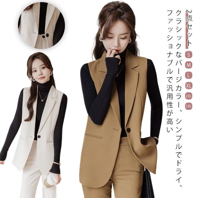 通勤 レディース セットアップ ベスト パンツスーツ セレモニー セットアップ 2点セット 入学式 テーパードパンツ スーツ ビジネススーツ フォーマル キレイめ 卒業式 入園式 卒園式 着痩せ 通勤 オフィス ビジネス 仕事 事務所