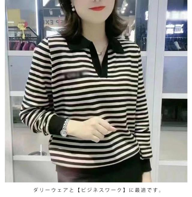 シンプル カジュアル ボーダー ポロシャツ トップス Tシャツ 韓国 かわいい レディース おしゃれ 普段着 かわいい
