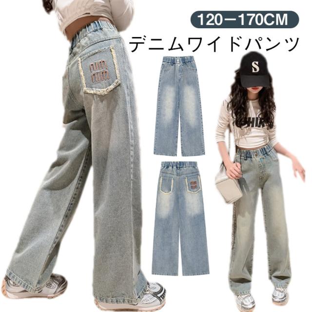 デニムパンツ 子供 女の子 デニムワイドパンツ ウエストゴム ワイドパンツ ロング丈 ボトムス ジーンズ キッズ 子供 120 130 140 150 160 170
