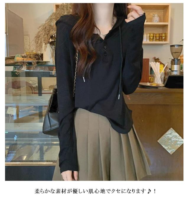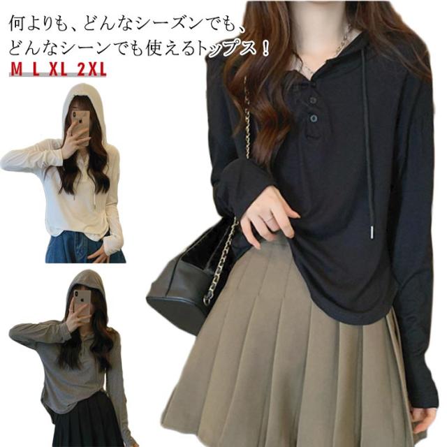 フード付き パーカー カットソー レディース 長袖tシャツ tシャツ Vネック パーカー 送料無料 ゆったり 春 夏 秋 冬 送料無料 レディース ロンT 長袖tシャツ フード付き 送料無料 カットソー プルオーバー
