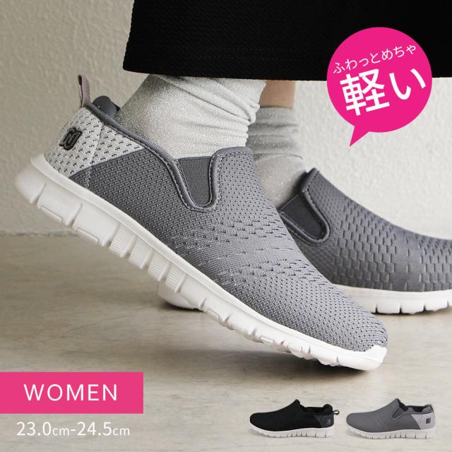 スリッポン レディース スニーカー ローカット クッションインソール 軽量 履きやすい 歩きやすい ウォーキングシューズ コンフォートシューズ レディース スニーカー スポーツ 運動靴 ジュニア 女の子 軽い 女性用 黒 ブラック グレー 2861