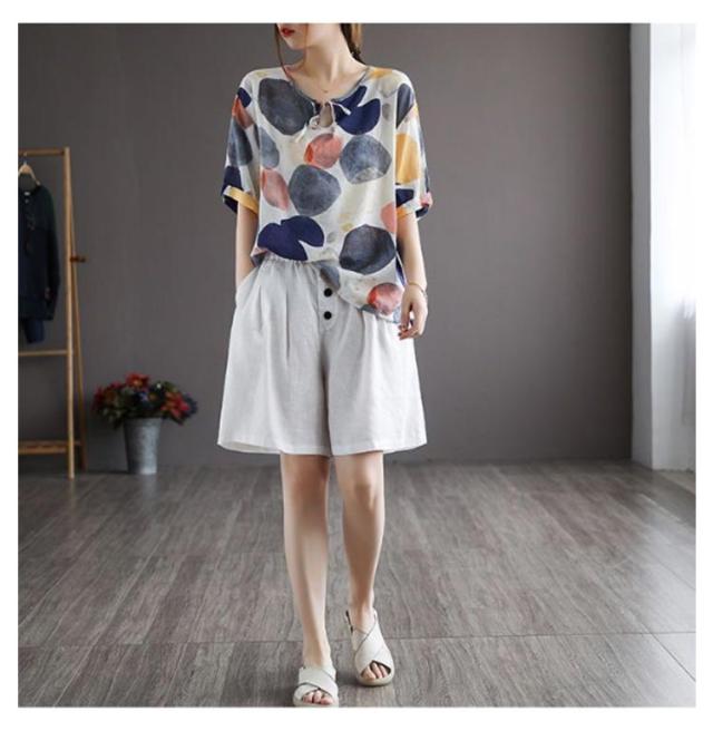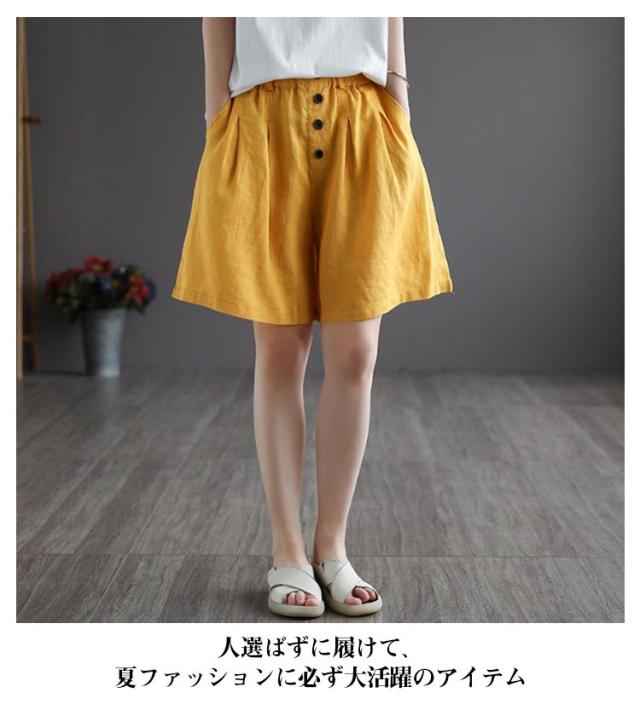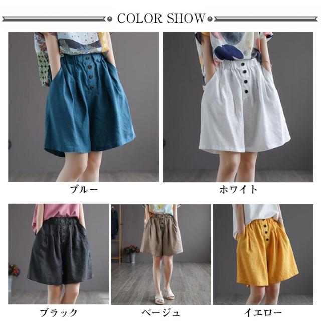 綿麻 レディース ウェストゴム 綿 パンツ 夏 ハーフパンツ キュロット ルームウェア パンツ ボトムス 五分丈 ショートパンツ 夏服 パンツ ズボン 部屋着 女の子 ガウチョパンツ ワイド aライン ゴム ハイウエスト 無地 リネンパンツ 薄手 ゆったり 体型カバー
