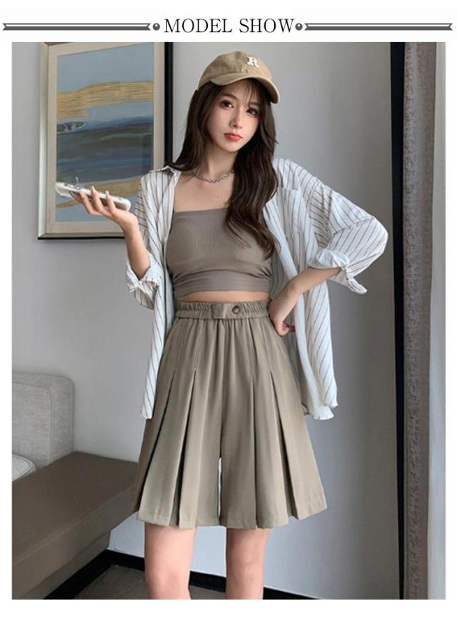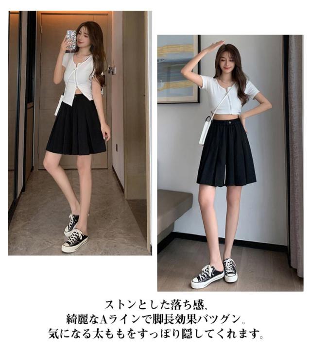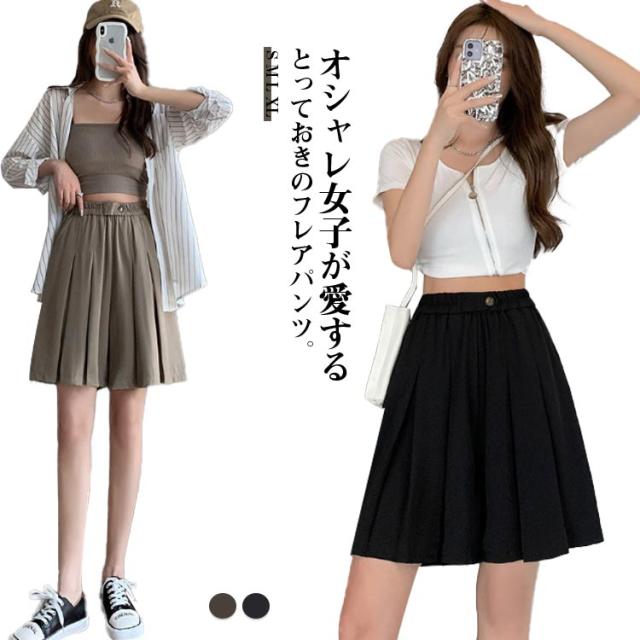 レディース ショートパンツ Aライン ワイドパンツ キュロットパンツ スカーチョ スカンツ ゆったり ハイウエスト フレアパンツ プリーツスカート リラックスパンツ ガウチョパンツ 無地 涼しい 薄手 ショートパンツ お洒落 カジュアル ボトムス 夏新作