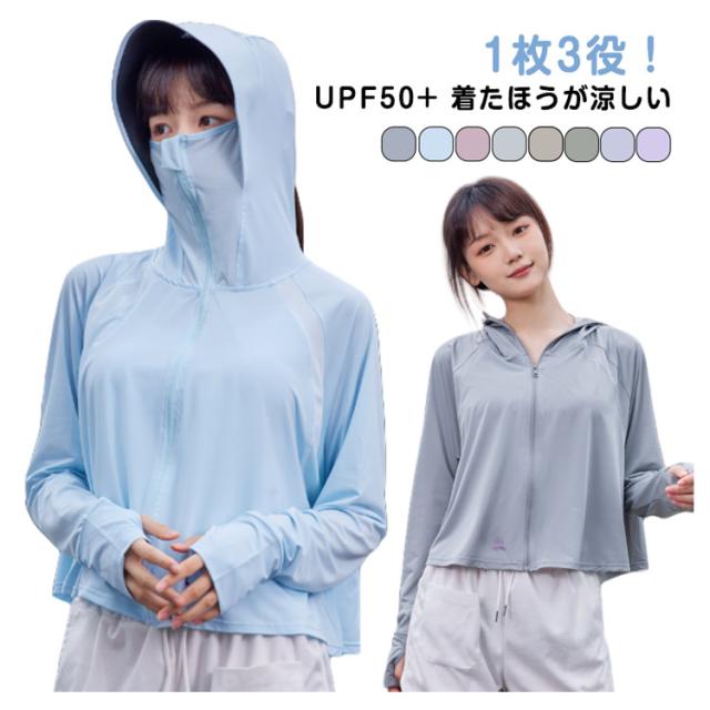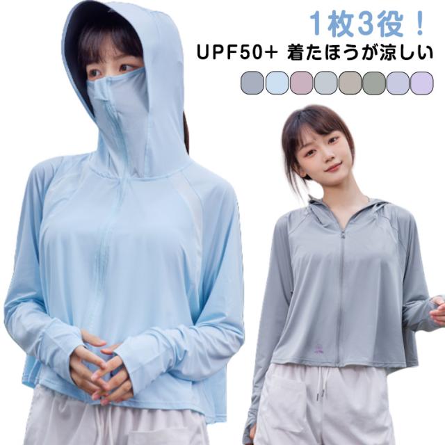 薄手 UVカット UPF50+ 日焼け止め ラッシュガード レディース マスク スポーツ アームカバー 長袖 ジム ヨガ UV つば バイザー UVパーカー 帽子 冷感 接触冷感