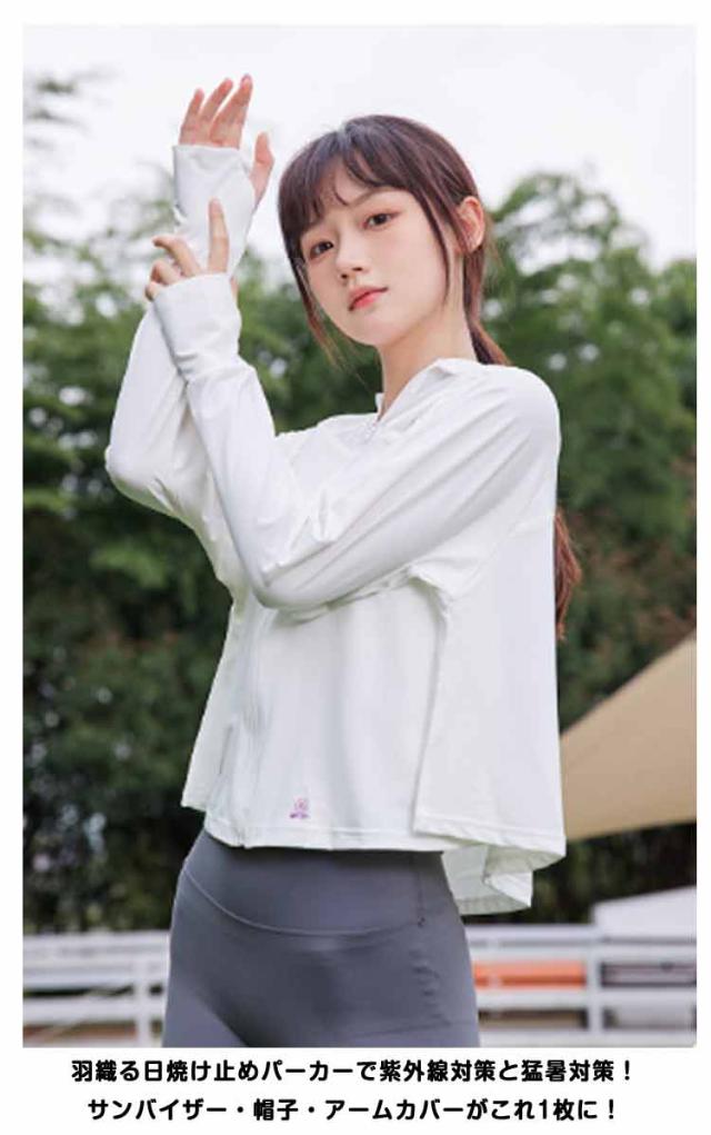 | 1枚3役!UPF50+ 着たほうが涼しい 羽織る日焼け止めパーカーで紫外線対策と猛暑対策! サンバイザー・帽子・アームカバーがこれ1枚に! | |