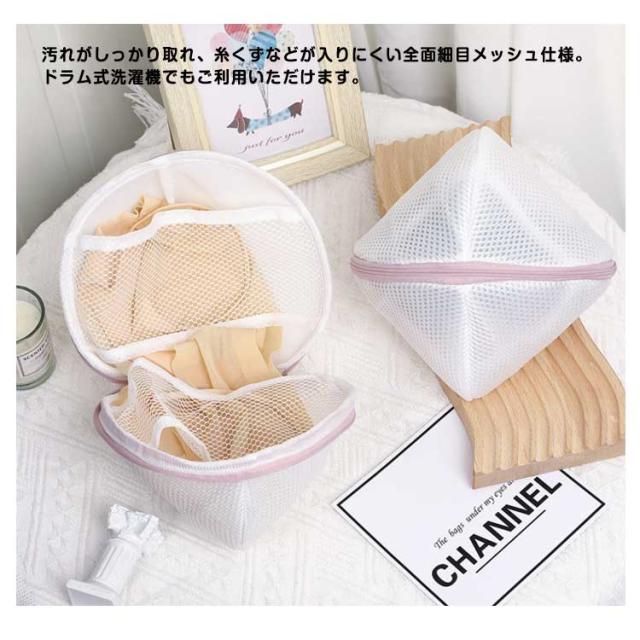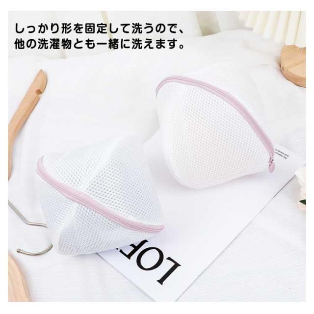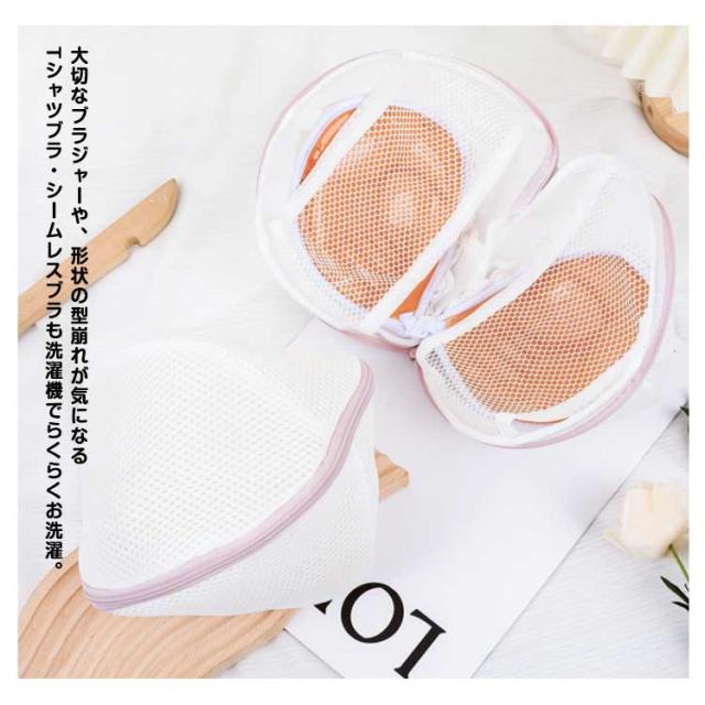 | ブラジャー用洗濯ネット 大切なブラジャーや、形状の型崩れが気になるTシャツブラ・シームレスブラも洗濯機でらくらくお洗濯。 しっかり形を固定して洗うので、他の洗濯物とも一緒に洗えます。 汚れがしっかり取れ、糸くずなどが入りにくい全面細目メッシュ仕様。ドラム式洗濯機でもご利用いただけます。 | |