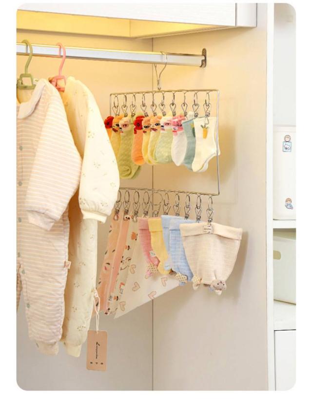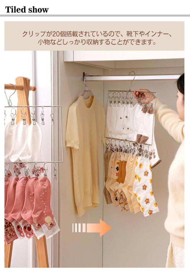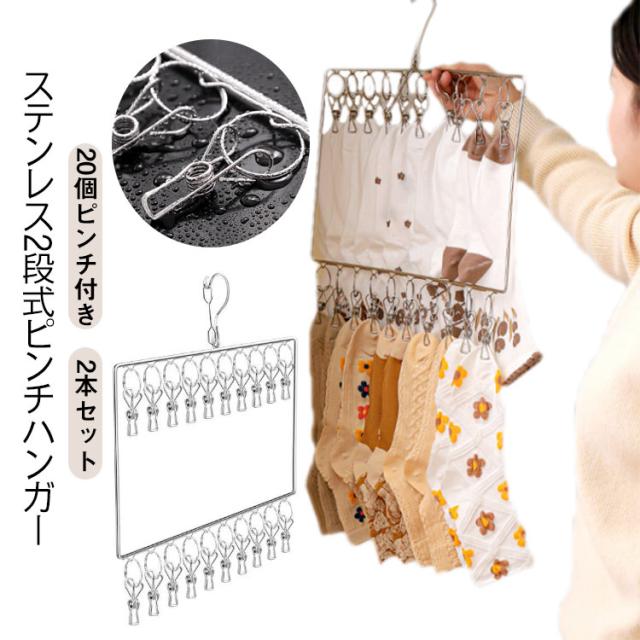 洗濯バサミ ステンレス 2段式 2本セット ピンチハンガー 靴下 クリップハンガー 室内 屋外 物干しハンガー 20個ピンチ付き 洗濯物干し 洗濯ハンガー タオル 2本セット 下着 収納 コンパクト 丈夫