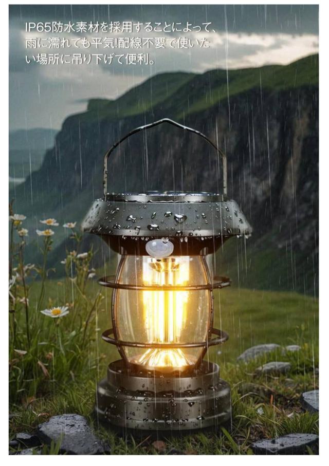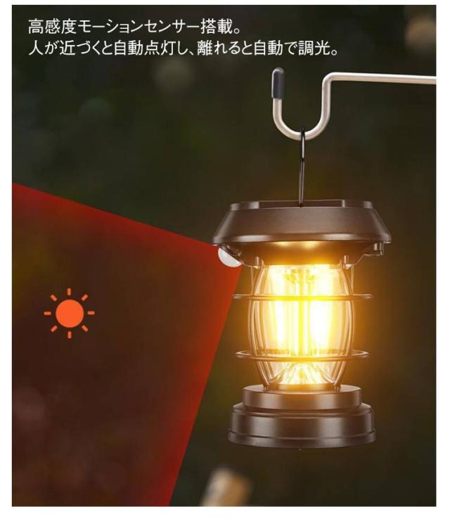 | 人感センサー付きソーラーライト。 太陽光パネル/USBから充電が可能。 高効率ソーラーパネル搭載。昼間に自動充電し、夜間に点灯。省エネで配線不要。 ソーラーパネル、ライト本体、バッテリーが一体化したシンプルなデザイン。取り付け簡単で様々な場所に適用可能。 高感度モーションセンサー搭載。人が近づくと自動点灯し、離れると自動で調光。 IP65防水素材を採用することによって、雨に濡れても平気!配線不要で使いたい場所に吊り下げて便利。 玄関や家の周りに明るい照明効果を提供だけではなく、停電、地震、台風など災害時に非常灯としても使えます | |