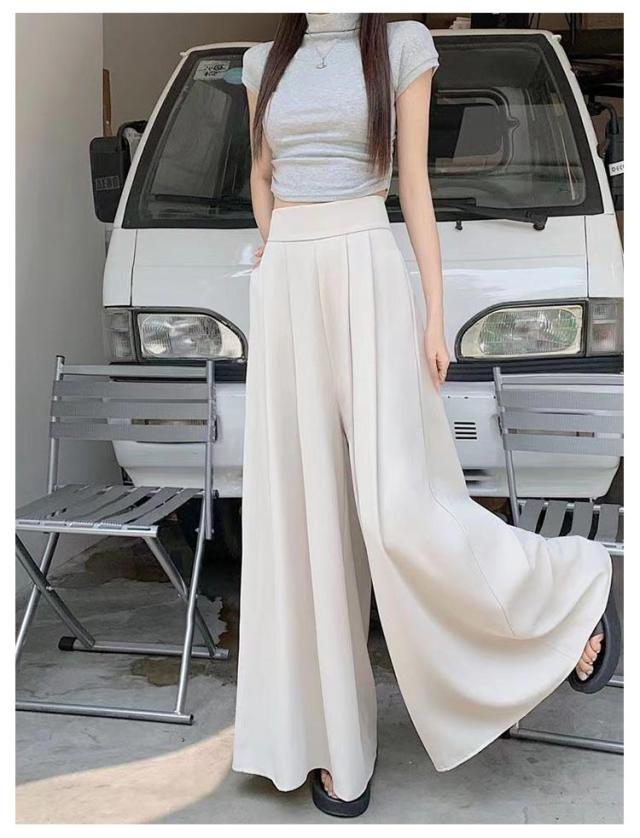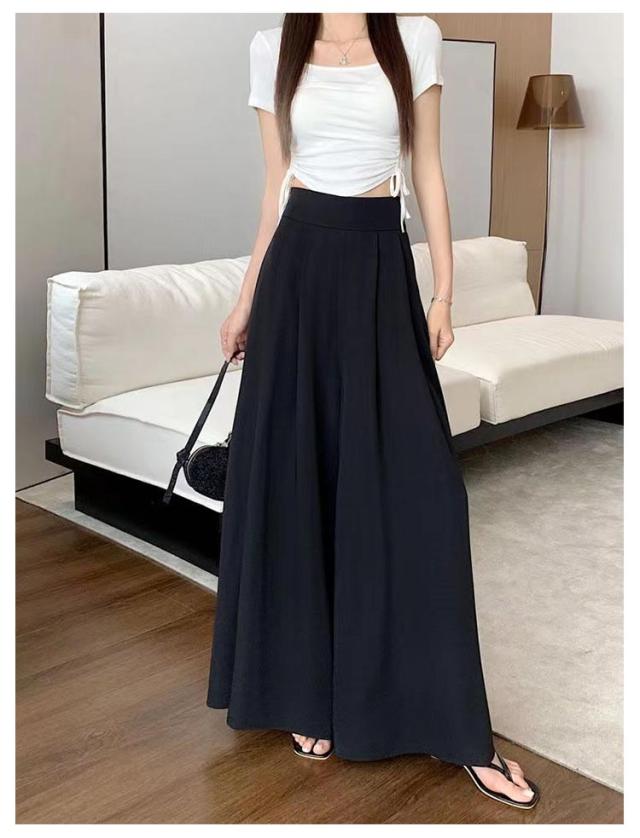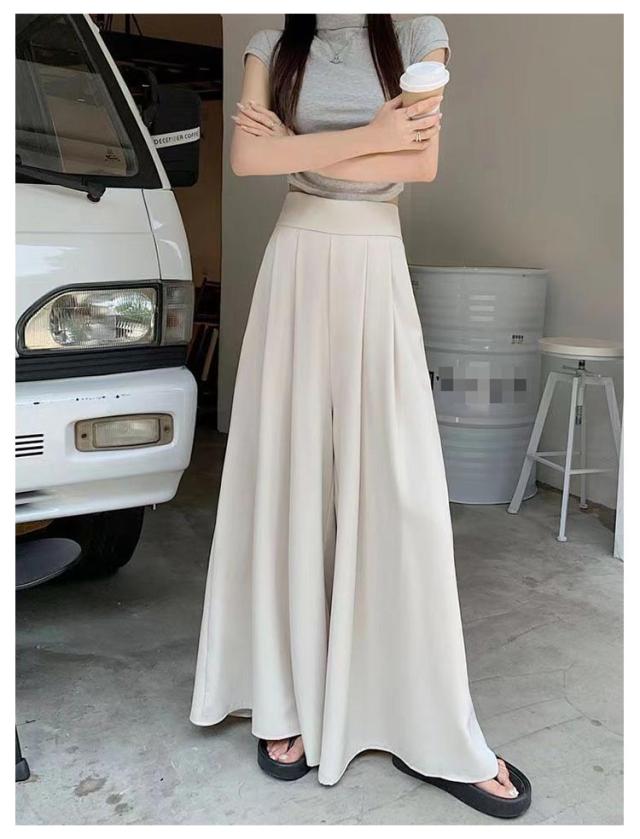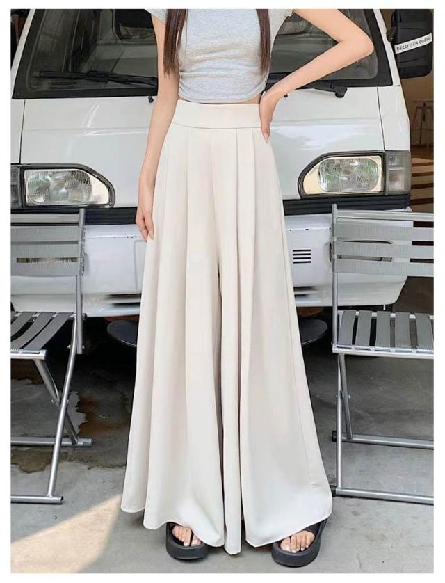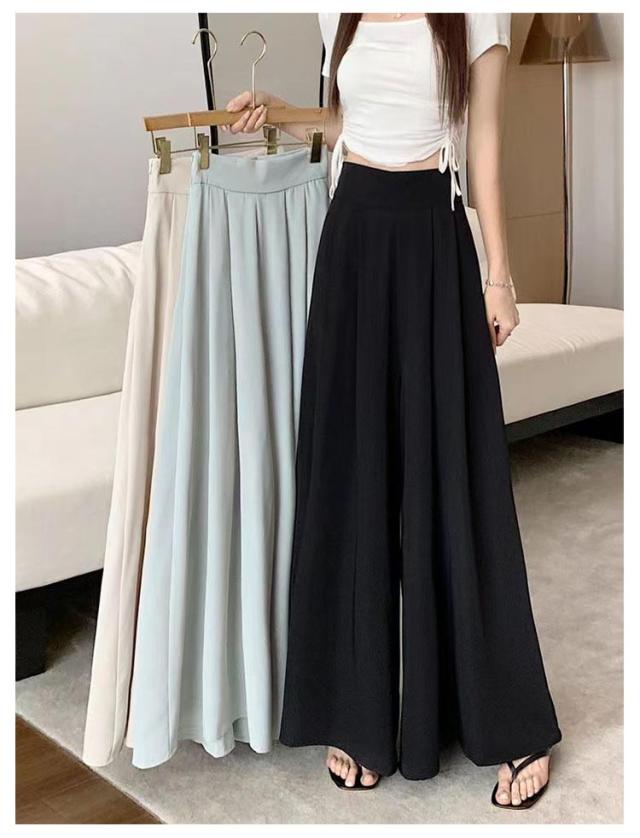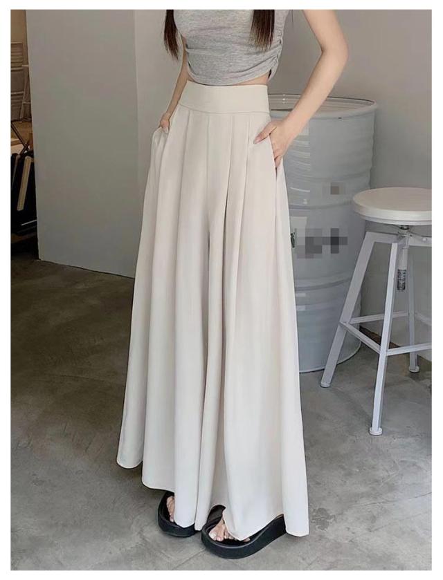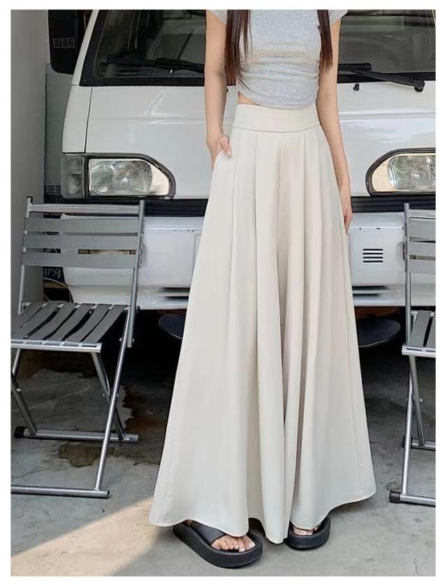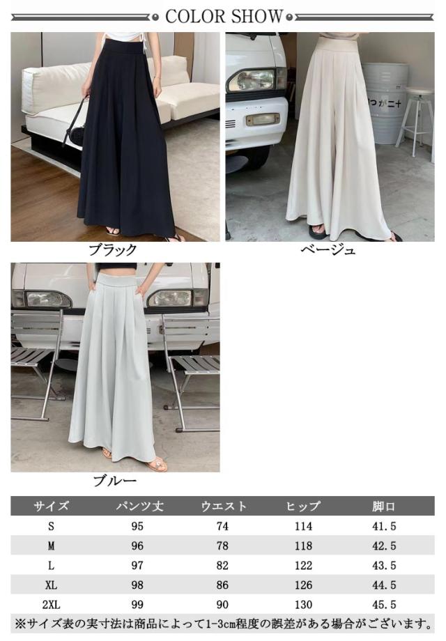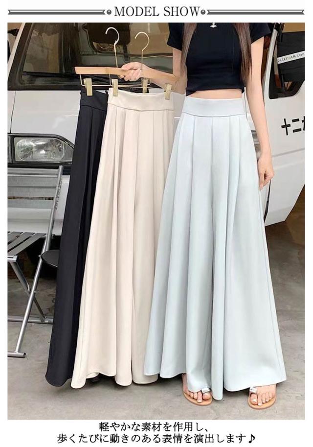 薄手 ゆったり 夏 ロングパンツ おしゃれ ボトムス 無地 大きいサイズ レディース ワイドパンツ パンツ ガウチョパンツ スラックス プリーツ ハイウェスト カジュアル スラックスパンツ 韓国ファッション スカーチョ 快適性 夏 体型カバー スカンツ