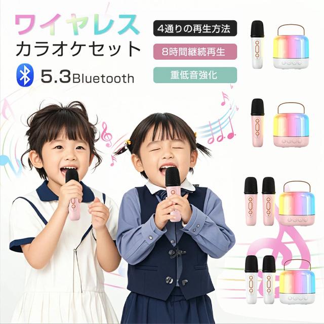 | 製品特徴 | 【自宅でカラオケを楽しみたい方へ!】 小型なのにパワフル!ボディを超える大音量が出られ、家でもアウトドアでも音割れなく、バランスを取れたステレオサウンドをお届けます。高感度のワイヤレスマイクは2つが付き、あらゆる方向からの音声ピックアップが強化され、自宅で気軽にカラオケを楽しみます。 【雰囲気を一層盛り上げる多彩なランプ】 ライトショー機能が追加され、光り効果を変更でき、雰囲気を一層盛り上げることができます。お友達や家族と集まった時に、気兼ねなく好きなだけ歌えるので、一日の疲れもストレスも解消できます。ホームパーティーやカラオケ大会、社内行事、忘年会、新年会、二次会、文化祭、学園祭などにも最適です。 【多種の簡単な接続方式】 Bluetooth、USB、Type-C、AUXに対応し、スマホ、パソコン、またはテレビに簡単に接続できます。さらにTFカードにも対応しており、お気に入りの曲をTFカードに保存し、Bluetoothに接続する必要なく音楽を再生することができます。(注意:TFカードとオーディオケーブルは付属していません。) 【シンプルで操作簡単】 自分の音声は女性の音声、子供の音声、悪魔の音声、男性の音声という4種類の異なる音声が変更できるので、子どもから大人まで人気があります。エコー、再生音量なども自由に調節可能、お好みのサウンドをお楽しみいただけます。また、任意の曲からボーカルを除去/再開する機能も搭載し、音楽に合わせて自分の声を一緒に歌いましょう! 【長時間続けて快適に使用できる】 片手で持ち運べるコンパクトサイズながら大容量バッテリーをを搭載し、1回の充電で約最大8時間の連続再生が可能です。(※音量や再生楽曲より、再生時間と異なる場合があります)。 |