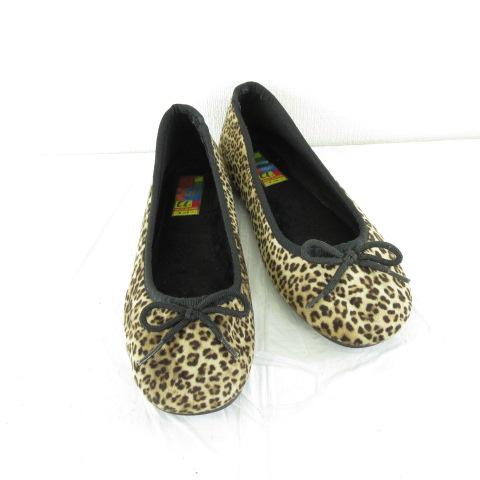 【中古】オキティ O'Kyti バレエシューズ ボアライニング ヒョウ柄 ベージュ 黒 36 *A799 レディース