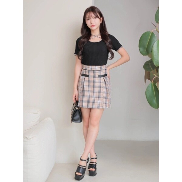 ・同じ生地を使用した《000453010260 / チェックパイピングハーフリブニット》を合わせるのが推しコーデ!
