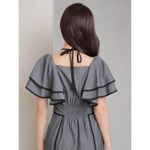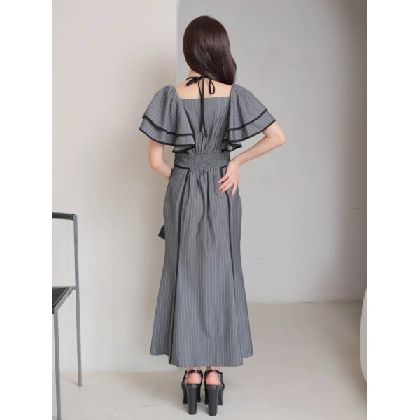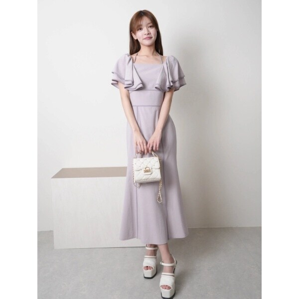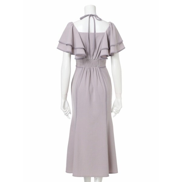 ラッフルスリーブパイピングマーメイドワンピース