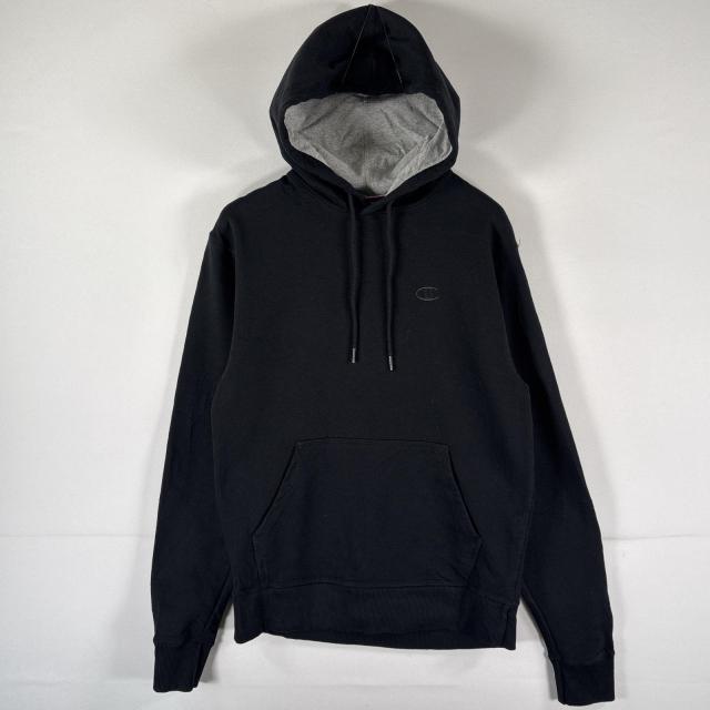 古着 チャンピオン Champion パーカー スウェット プルオーバー ワンポイントロゴ刺繍 フーディ ワッペン S ブラック メンズ