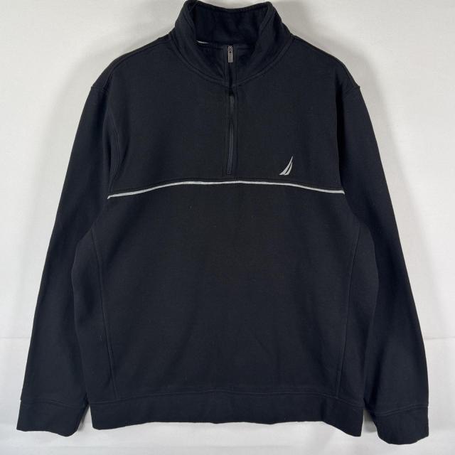 古着 ノーティカ NAUTICA スウェット ハーフジップ トレーナー プルオーバー ワンポイントロゴ刺繍 L ブラック メンズ