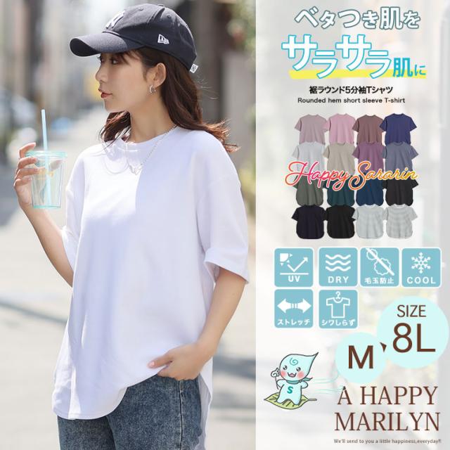 春新作 新作 大きいサイズ レディース トップス | 新色追加!! 【ハッピーさらりん】 裾ラウンド 五分袖 Tシャツ [491062] LL 3L 4L 5L 6L 7L 8L