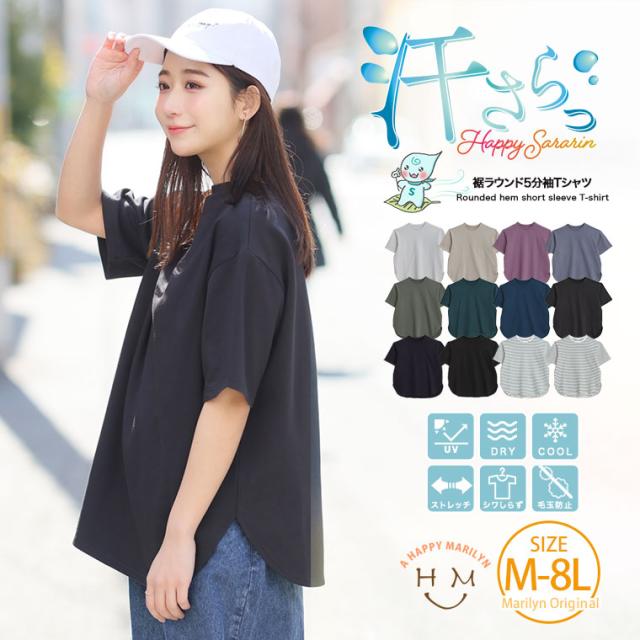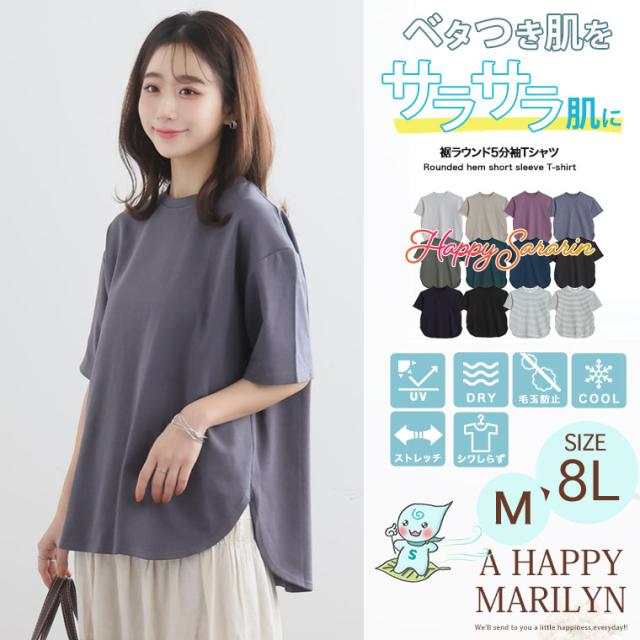 春新作 新作 大きいサイズ レディース トップス | 【ハッピーさらりん】 裾ラウンド 五分袖 Tシャツ [491062] LL 3L 4L 5L 6L 7L 8L