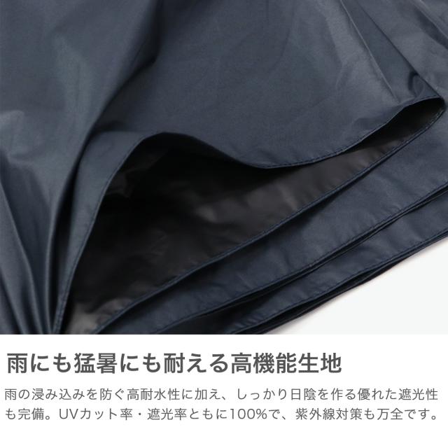 強い日差しや雨風にも対応する、タフな構造の晴雨兼用折りたたみ傘。親骨60cmでしっかりカバーし、一級遮光&UVカットで紫外線対策も万全です。セミオートクローズ式で、傘を閉じた後のまとめやすさも魅力。撥水性に優れたナノ撥水加工で雨の日も快適に。ファスナー付きケースでスムーズに出し入れができ、携帯にも便利な全天候型モデルです。