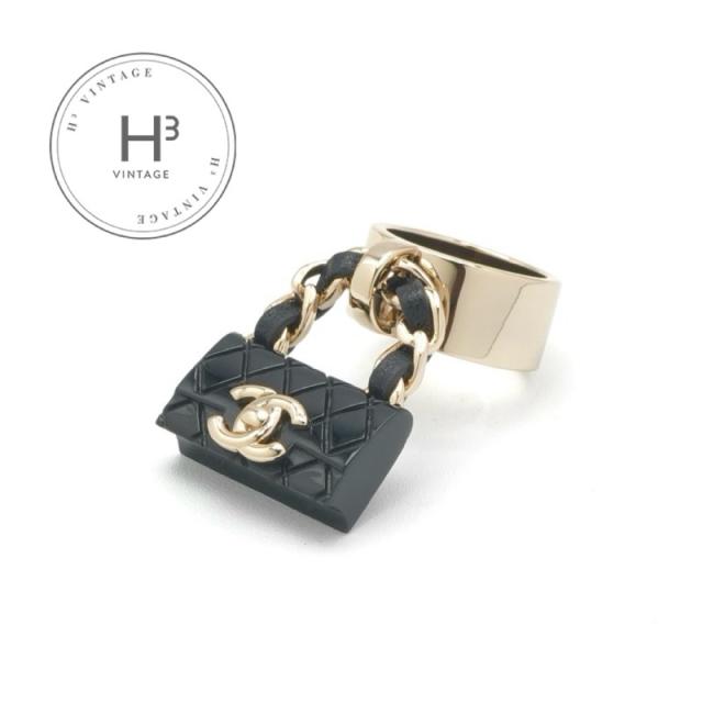シャネル CHANEL リング 指輪 ゴールド ブラック ココマーク マトラッセ バッグチャーム