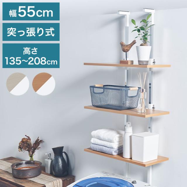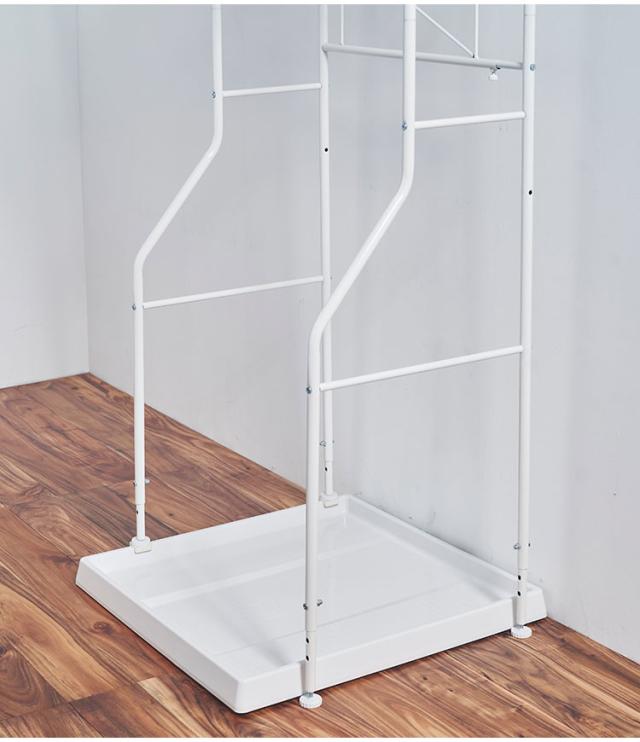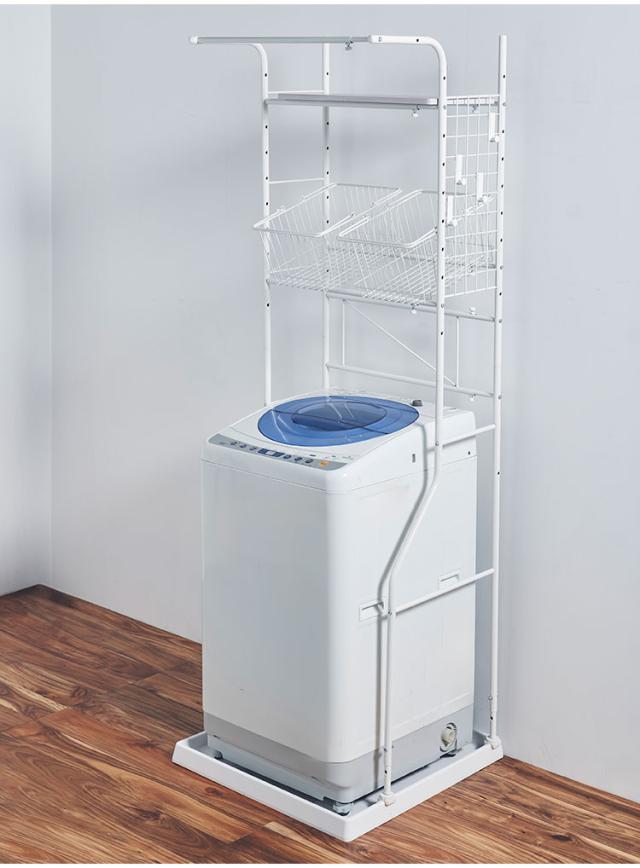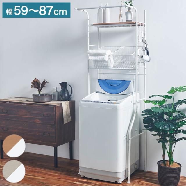 ランドリーラック 伸縮式 幅59~87 置き型 取り外しできるバスケット2個付き カゴ付き 脚段差対応 防水パン対応 洗濯機ラック ランドリー 棚 ラック ランドリー収納(代引不可)【送料無料】