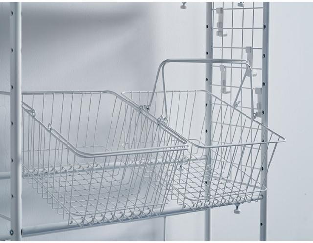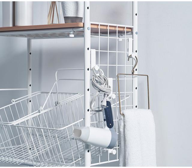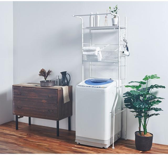 洗濯物の持ち運びにも便利な持ち手付きのカゴがセットのランドリーラックです。