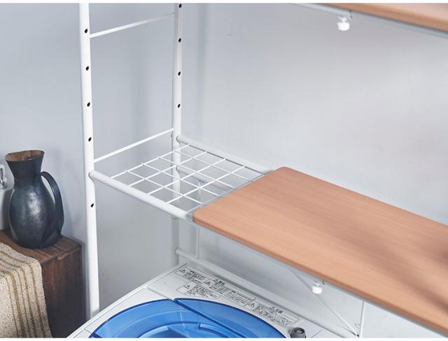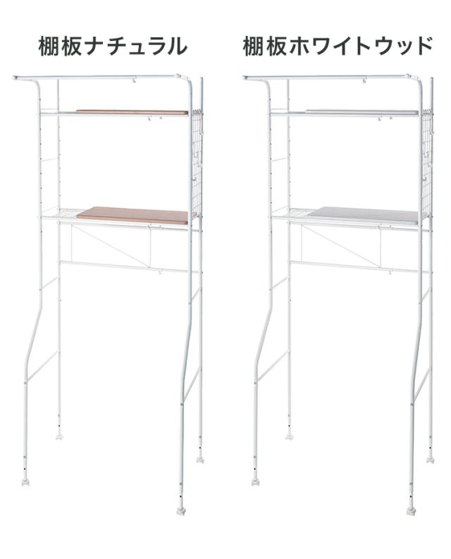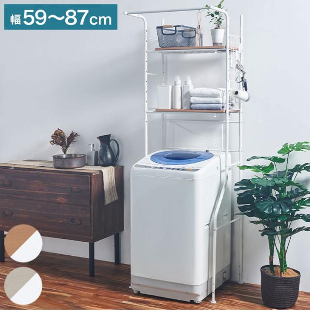 ランドリーラック 伸縮式 幅59~87 置き型 棚板2枚付き ハンガーバー付き 脚段差対応 防水パン対応 洗濯機ラック ランドリー 棚 ラック ランドリー収納(代引不可)【送料無料】