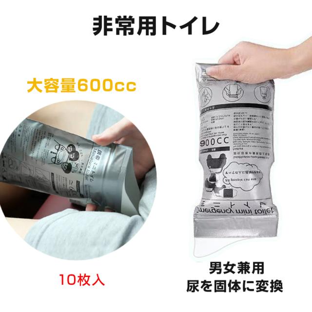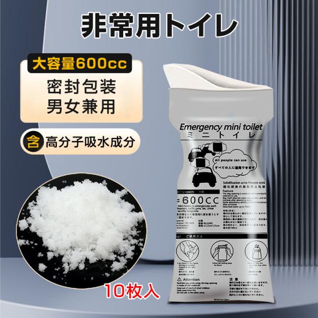 非常用トイレ 10枚セット 携帯 ミニトイレ 大容量 600cc 男女兼用 簡易トイレ 尿 吐き気 臭い防止 漏れ防止 携帯用 防災 介護用 渋滞 車 キャンプ アウトドア