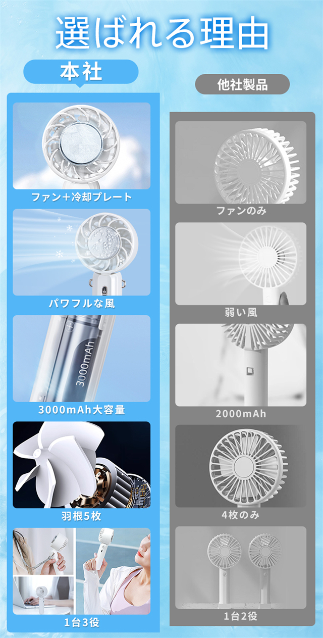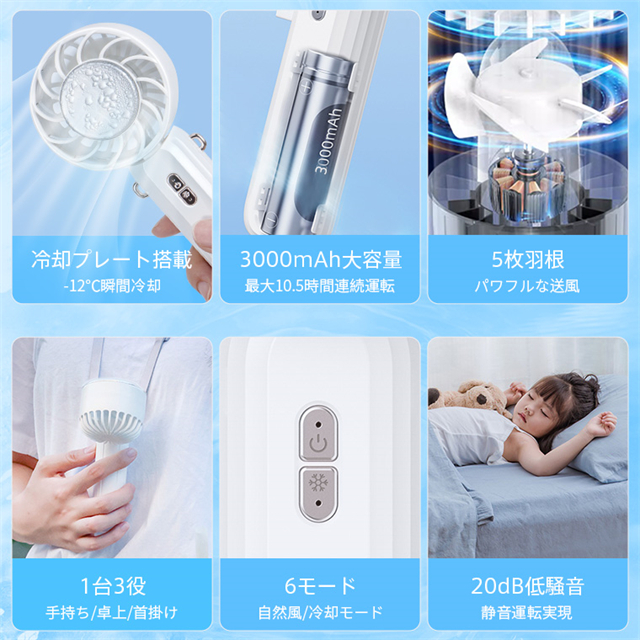 最安挑戦 春新作 送料無料 新作 ハンディファン 扇風機 冷却プレート 小型扇風機 3段階風量 充電式コードレス 大容量バッテリー 3WAY 一台三役 ハンディ扇風機 ミニ扇風機 手持ち扇風機 USB充電 卓上 携帯扇風機
