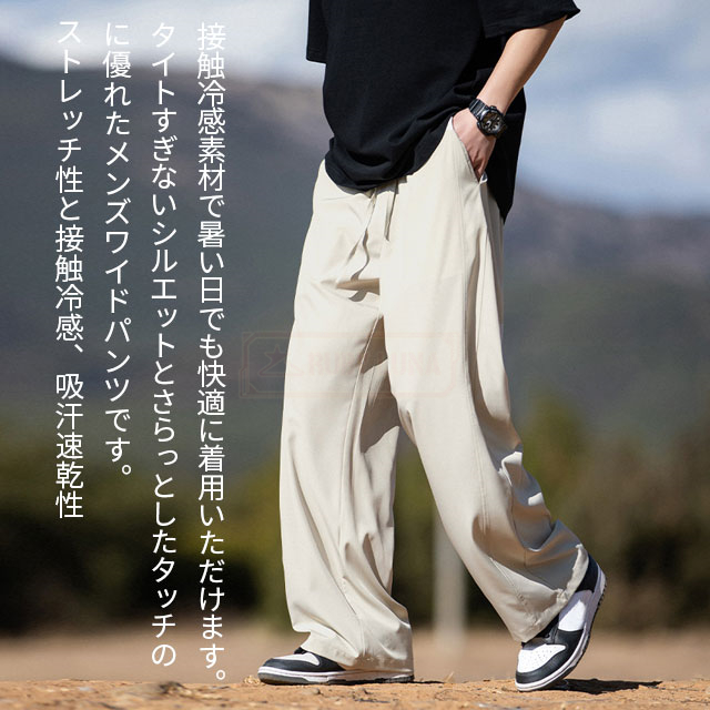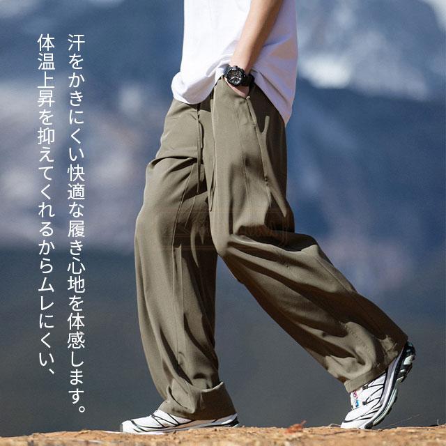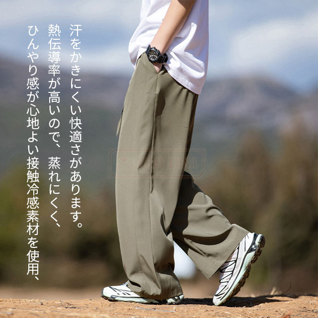 最安挑戦 冬新作 送料無料 新作 パンツ メンズ ワンドパンツ 接触冷感 夏 涼しい 速乾 アイスシルク 冷感 ひんやり 吸水速乾 清涼 涼感 ズボン ロングパンツ スポーツパンツ 無地 軽量 薄手 通気 オーバーオールパンツ 多用途