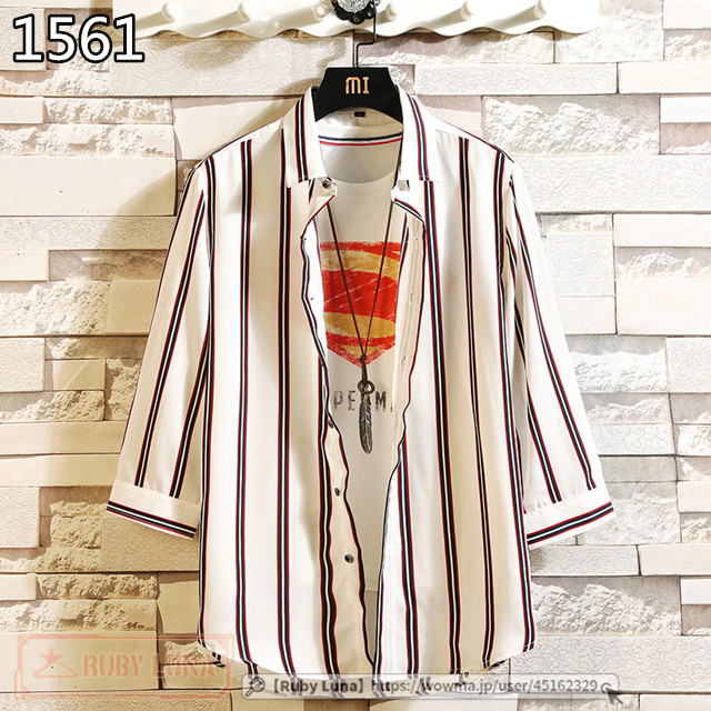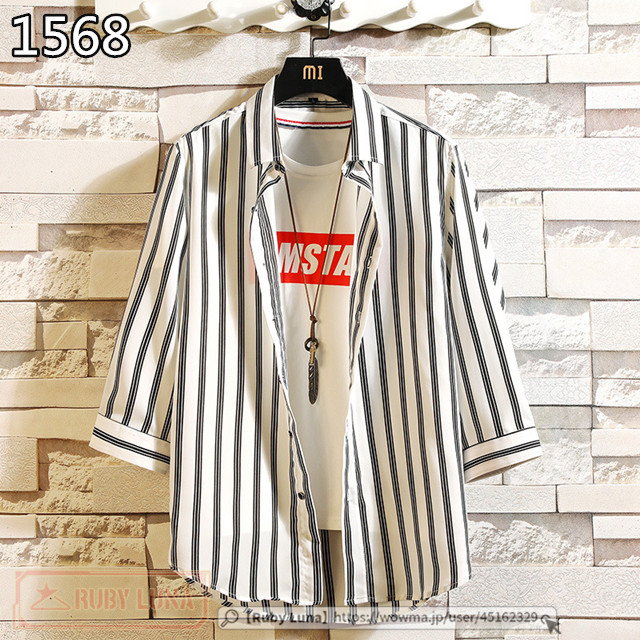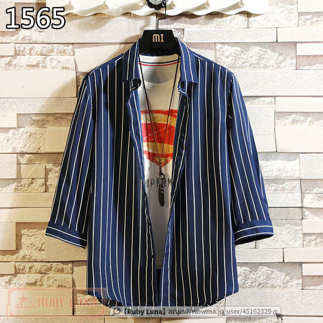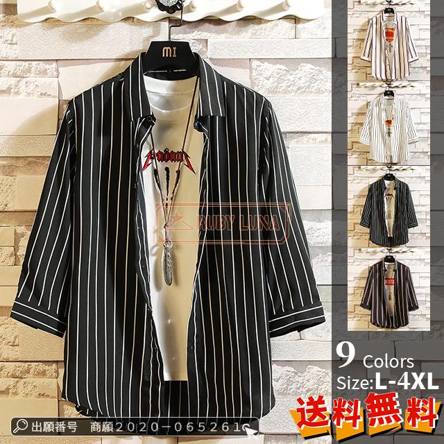 最安挑戦 春新作 送料無料 新作 シャツ メンズ ストライプシャツ 7分袖シャツ 七分袖 開襟シャツ ワイシャツ カジュアル 通勤 紳士服 トップス 2021夏 おしゃれ 薄手 夏物 かっこいい