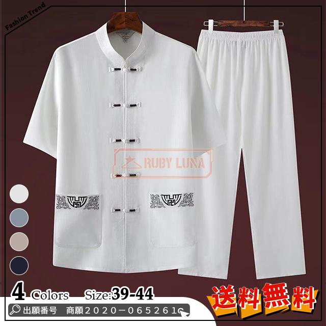 最安挑戦 冬新作 送料無料 新作 セットアップ メンズ リネン 上下セット 刺繍入り 立ち襟 半袖Tシャツ ロングパンツ 2点セット カジュアル 大きいサイズ 夏 涼しい ルームウェア 普段着 太極拳服 練習着 中高年