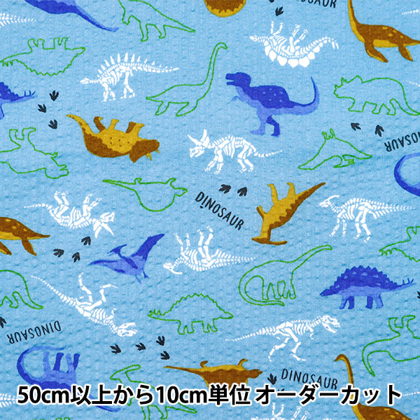 【数量5から】 生地 『リップル 恐竜 サックス 38130-6B』