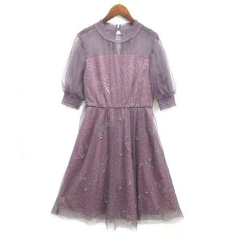 【中古】アサクラ シアー チュール ビジュー ドレス ワンピース 半袖 スモークラベンダー 38 結婚式 二次会 レディース