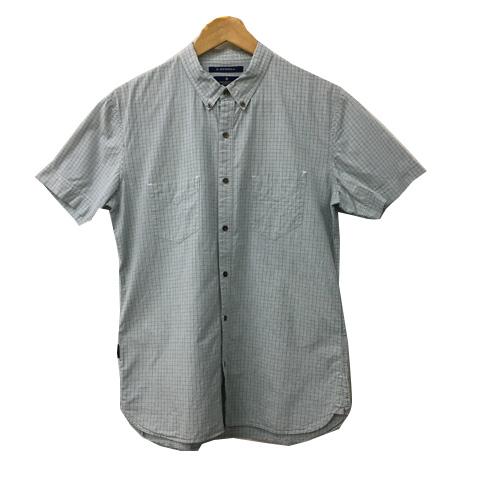 【中古】アールニューボールド シャツ カジュアル ボタンダウン チェック 半袖 L 青 緑 ブルー グリーン メンズ