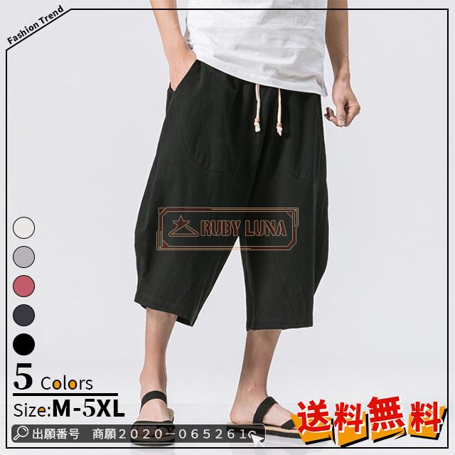 最安挑戦 春新作 送料無料 新作 リネン パンツ メンズ 7分丈 チノパン 麻 イージパンツ ワイドパンツ サルエルパンツ 大きいサイズ クロップドパンツ リラックス ナチュラル 清涼服